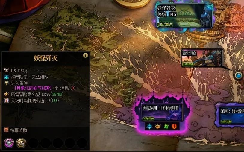 接下来是备受瞩目的“妖怪歼灭”,这张地图每次进入需要消耗8点疲劳值,但通关一次就能获得30至40万金币,以一管疲劳188点计算,玩家可以完成24次任务,相当于获取700至800万金币的巨大收益,除此之外,还有可交易的材料和神器宠物装备等额外奖励,宠物装备可以作为摸金道具,给小号使用,增加其战斗力。
