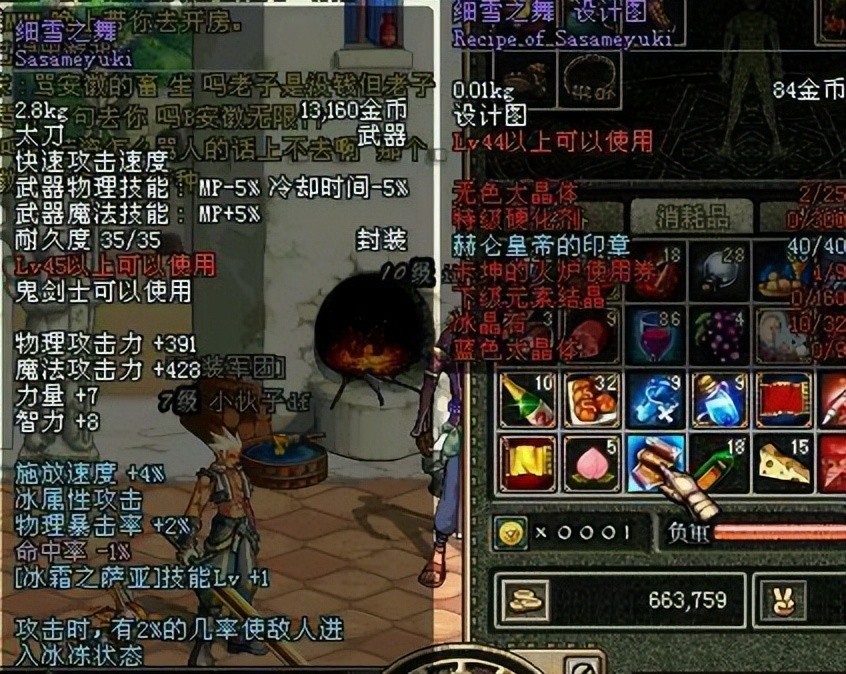 细雪之舞:这把武器背后有一个故事,我的好友曾得到梵风衣并将其出售,用那笔资金购买了细雪之舞的设计图自行制作,在PK场上,它表现出色,成为我们共同的骄傲。
