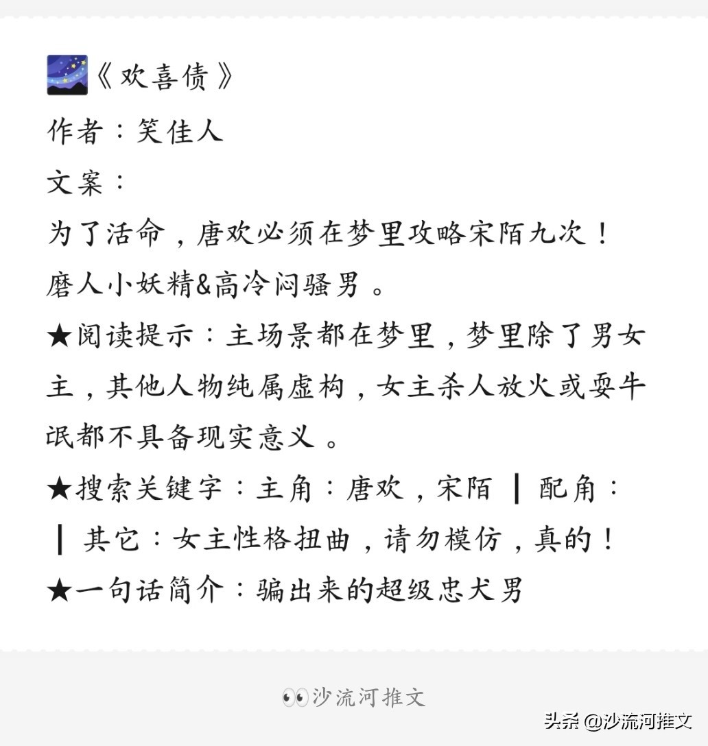 - 《欢喜的债》:女主以采花大盗的身份,在梦中与各路男主展开九次奇妙的冒险,虽然过程中有些曲折,但最终结局美好。