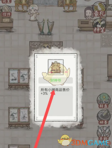 - 升级财神爷需要消耗一定的铜钱,消费4000铜钱后,你的所有小摊商品的售价将从原来的4%提升至6%,这是一个非常值得投资的升级,将为你带来更高的收益。