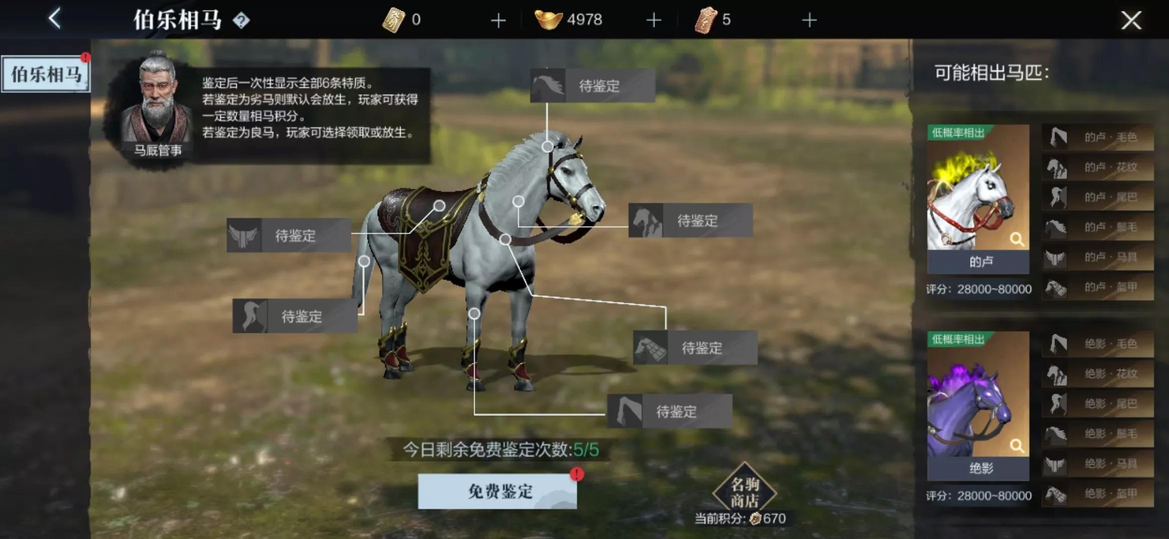 每天有五次免费的伯乐相马机会,虽然出极品马的几率较低,但大部分玩家仍能获得一定的收益,游戏的资源获取方式较为平衡,零氪玩家虽然资源有限,但也能通过日常任务和活动获得足够的资源来升级和培养武将,相对于充值玩家,零氪党在后期可能会感到资源紧张,升级速度较慢。